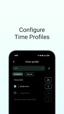 Work in timed focus sessions, followed by short breaks to keep you refreshed.